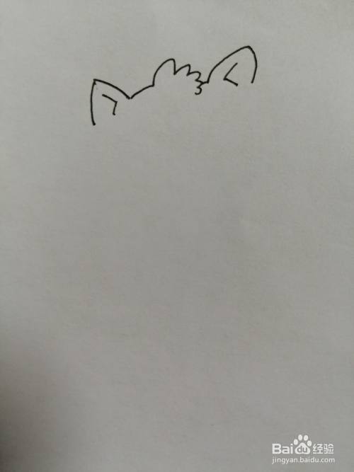 第一步,我们先把可爱的小猫咪的两只可爱的耳朵和椭圆形的脸画出来,画法比较简单。