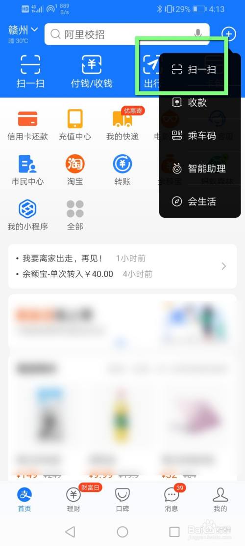 在弹出来的选项里面,可以选择扫一扫进行扫码付款。