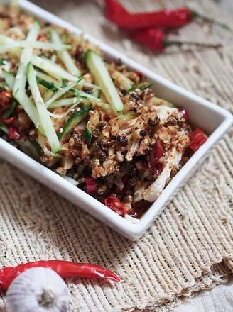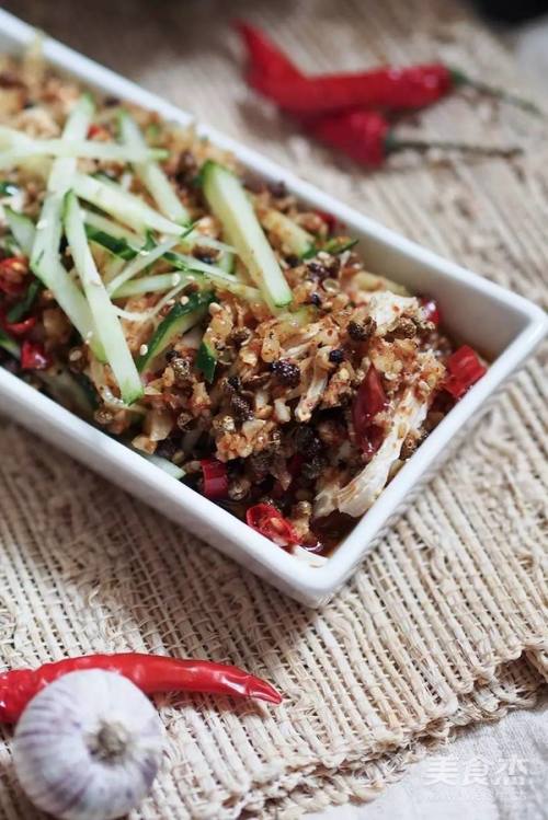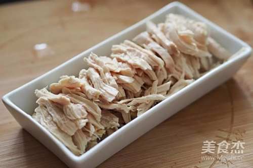 9黄瓜切丝,放在鸡胸肉上,把酱汁淋在上面。静置十分钟等待入味就可以吃啦!~当然你也可以放在冰箱时间长些,鸡胸肉会更入味也更美味哟!END