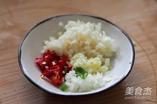 4葱白和姜蒜切成末,朝天椒切圈备用。