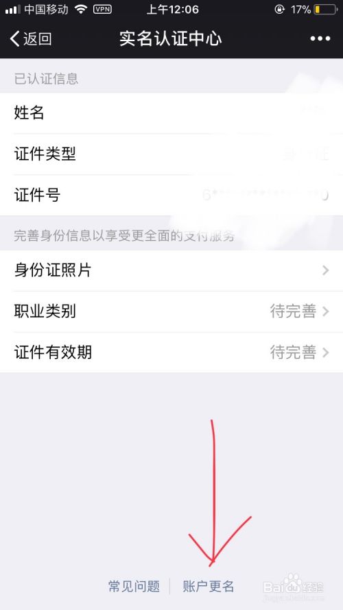 在实名认证选项当中,我们自信看屏幕最下方有一个比较小的“账户更名”选项,然后点击进入即可进行个人信息的解绑。