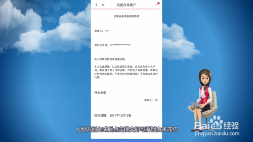京东白条冻结可以通过回复白条完成人脸验证解除冻结,具体操作方法如下: