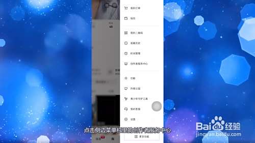 点击抖音个人中心上方的三条横杠图标,点击侧边菜单栏里的创作者服务中心。