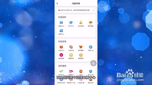 进入新的页面之后,页面中的全部分类,在功能列表中选择主播中心。