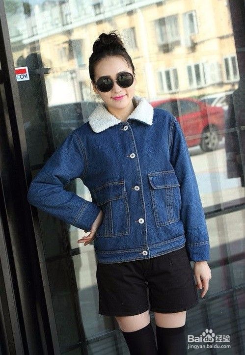 搭配一:加绒牛仔外套+黑色短裤