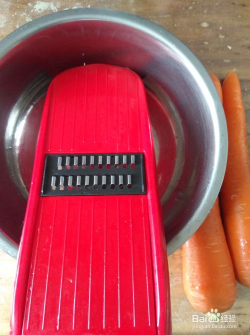 准备两个红萝卜,冲洗干净,可以不去掉皮,用最细的刮丝器。萝卜丝要拌面粉,用细的刮丝器蒸的时候容易熟也容易入味