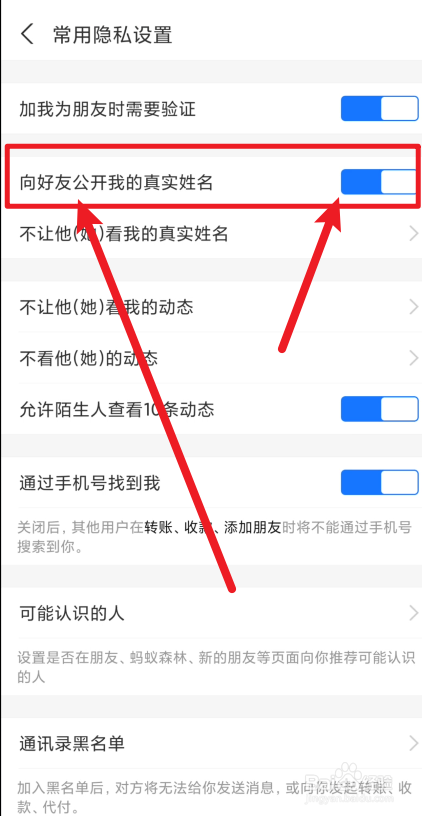 最后在如图界面,将【向好友公开我的真实姓名】一项关闭就可以了