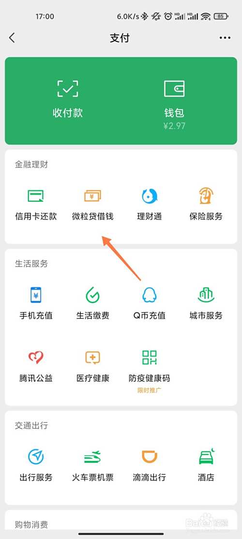 微粒贷是微信中的一项服务,当满足条件时,在微信支付页面中可以开通该服务。以下是具体的操作步骤: