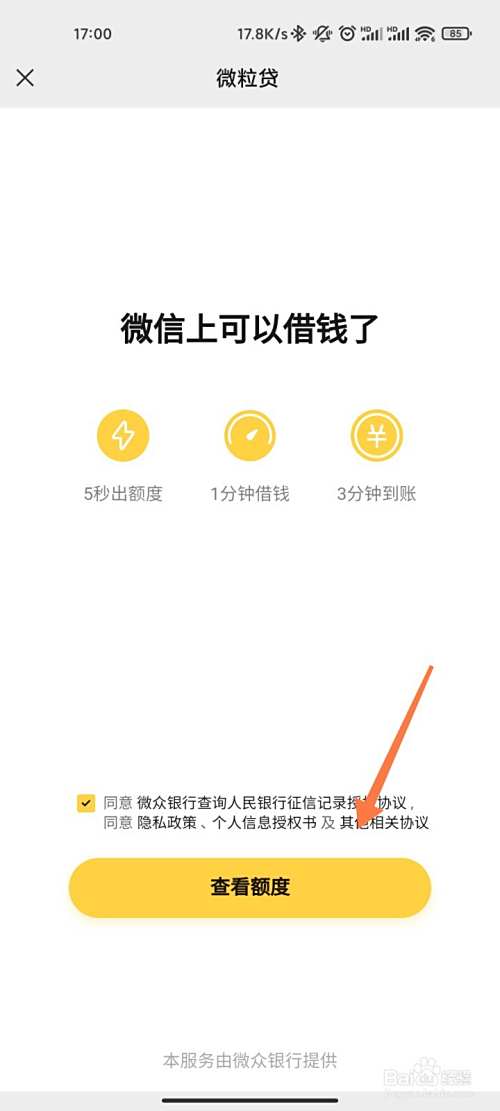 勾选同意协议后,点击【查看额度】,进入相关页面。