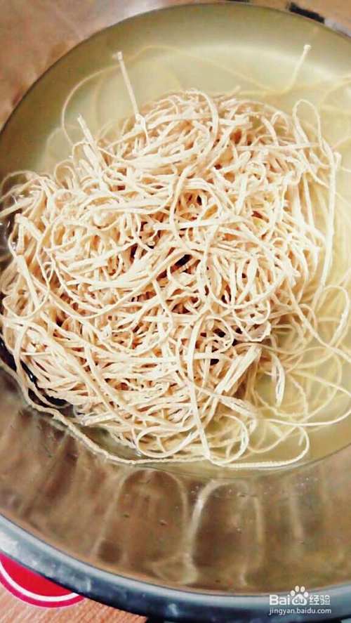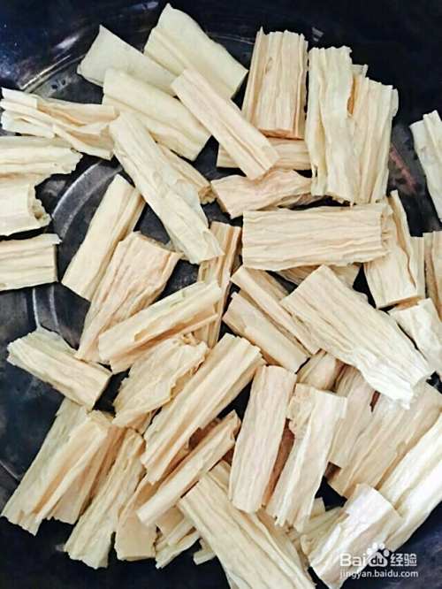 2.泡豆皮 豆丝 腐竹(豆制品一定要选品质好的 有豆香味)可以用温水泡 豆皮豆丝 半个小时到一个小时即可 尝一下不硬了就OK 用清水洗一下 豆皮可以改菱形◇刀(不会的问我 超级简单)