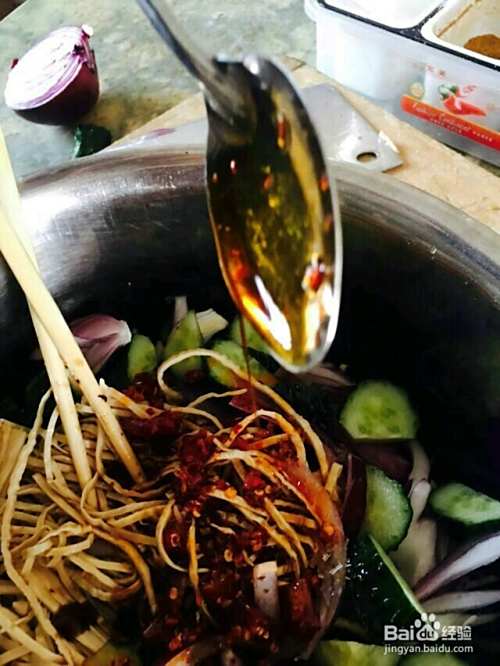 1.炸辣椒油 不少小伙伴抱怨掌握火候有难度 其实有个小窍门 辣椒粉 选颗粒稍微粗一些的 “片状”辣椒粉 由于辣椒籽整而不碎 可以充分 激发糊香味 油可以用色拉油一类本身味道较淡的油(推荐稻米油) 小火烧油 待刚有青烟冒出时 关火 盛一勺热油 淋在辣椒粉表面 用筷子搅动 均匀 一分钟后 淋入第二勺热油 搅动 再过一分钟淋第三次 这样 一碗焦香红亮的辣椒油就做好了 (不喜食辣的小伙伴注意了,辣椒油是提色增香的,可以选辣度低的辣椒粉,我觉得根本不辣,但是真的很亮很香)