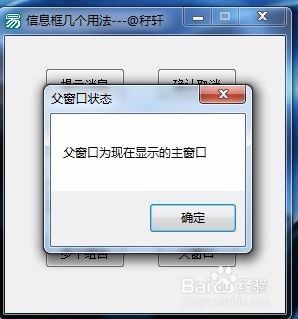 信息框 (“父窗口为现在显示的主窗口”, #确认钮, “父窗口状态”, _启动窗口)