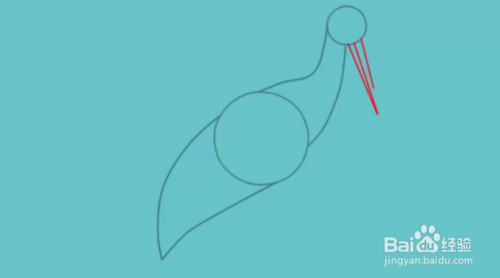 画一个中间带有一条线的三角形作为鸟嘴巴,往右下方延伸。