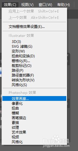 标题栏下面找到效果---效果画廊,选择粉笔炭笔也是可以的,修改具体数值。