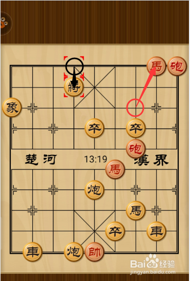 红方:馬四进五,黑方:将4进1;