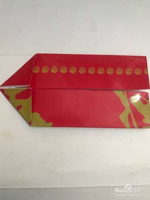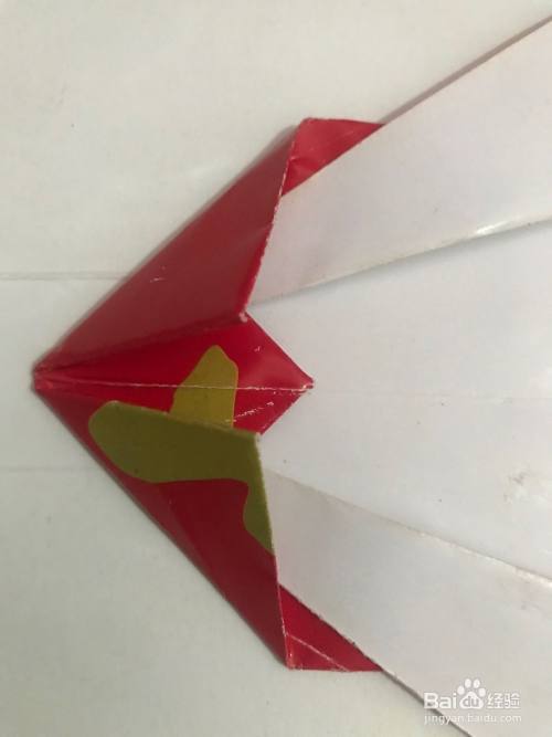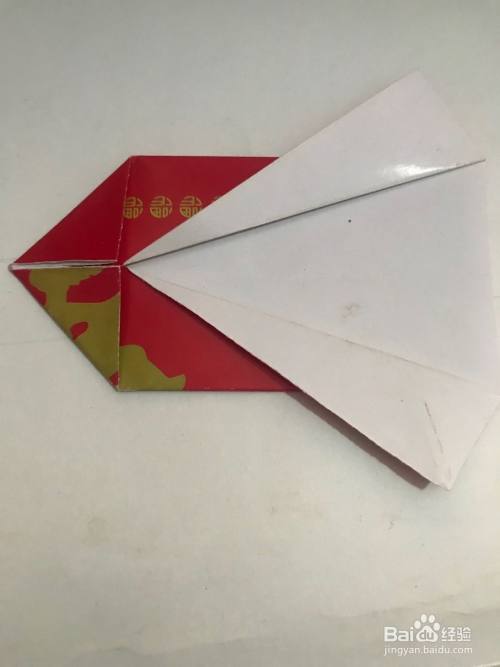 第三步 两个角都向中线折倒之后 再把左头的一个单页角向外劈折 然后再把另一个角同样折叠