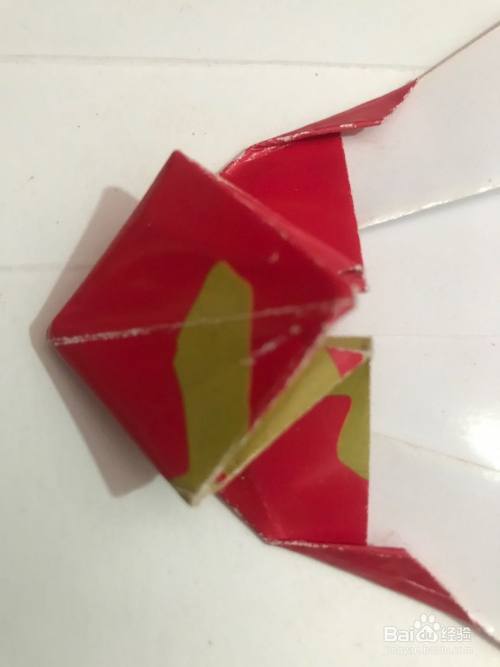 第六步 折好一个小双正方形之后 再把它两边的角向里折 折后取开 向里回折 然后把尖角顺势向外边折倒