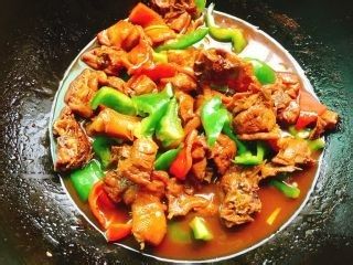 最后收汁,加入青红椒翻炒均匀即可出锅