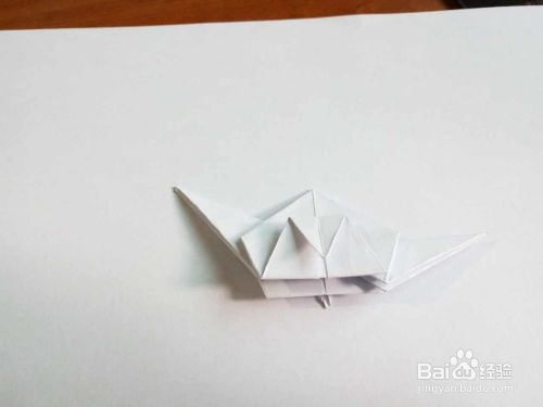 将下面两个三角部分一个向左上角折,一个向右水平方向折
