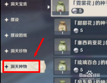 点击洞天种物可以购买种子,不同的种子只能种在特定的田地里。
