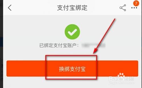 在支付宝绑定设置界面点击下方的换绑支付宝按钮,进行支付宝更换绑定;
