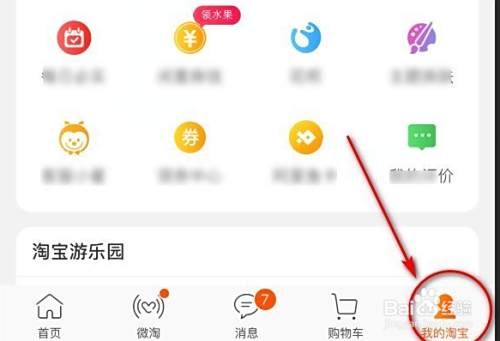 点击进入淘宝主界面,在淘宝主界面选择右下方的我的淘宝选项,点击进入;