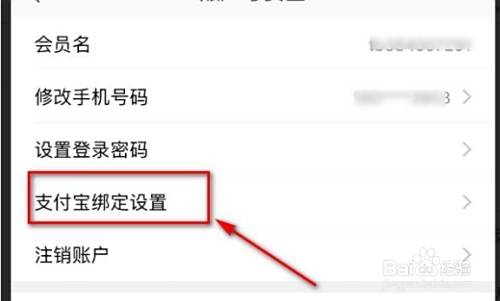 在账户与安全界面选择支付宝绑定设置选项,点击进入支付宝绑定设置界面;