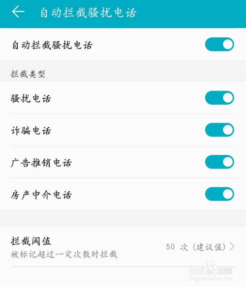 第六步,将自动拦截骚扰电话右侧的圆形图标从左往右移,即可完成设置。