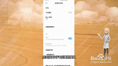 然后在页面中找到NFC,点击打开NFC后面的按钮。