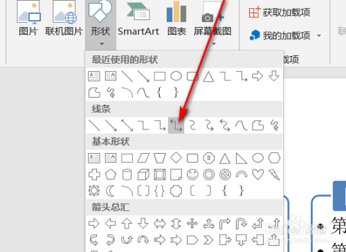 在接着自动打开的对话框中点击箭头中含有转弯的样式。