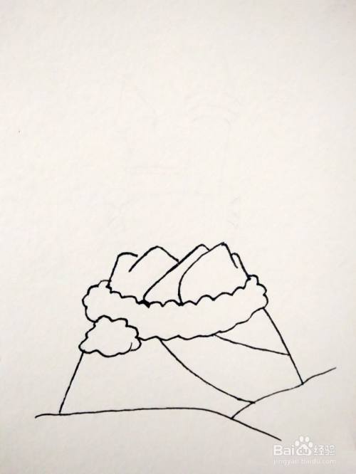 然后我们拿出来笔先画一个底层,也就是前面山的形状