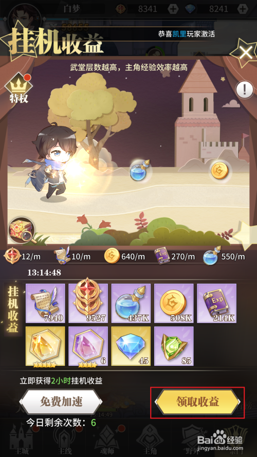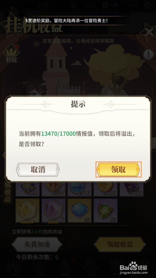 获得挂机收益成功,到此在游戏中领取挂机收益的方法就介绍完了。