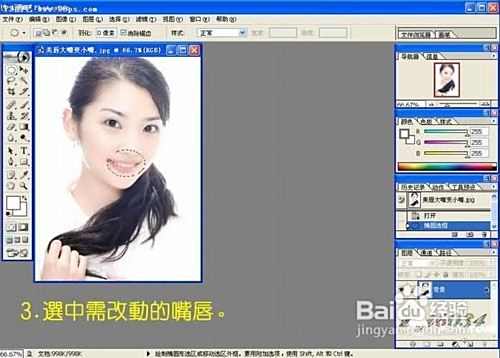 利用photoshop将大嘴MM变成樱桃小口.方法很简单,主要是将嘴唇转成选区并羽化后再执行扭曲挤压滤镜即可.这种将大嘴变小嘴的方法很是实用