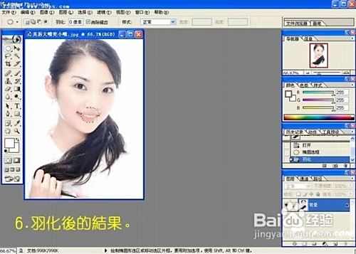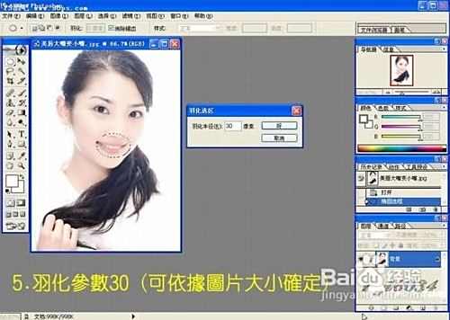 5羽化半径参数30,具体可依据照片的大小来确定.