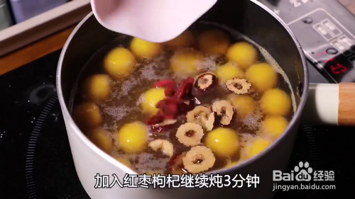 丸子煮浮起来后,加入酒糟,枸杞和红枣,再煮三分钟就能享用啦