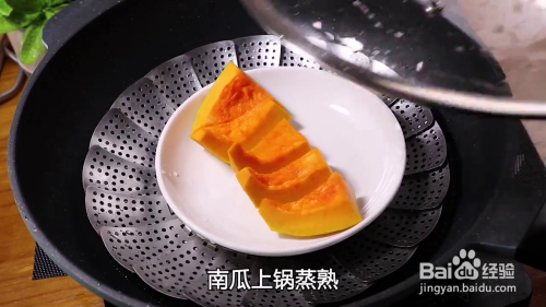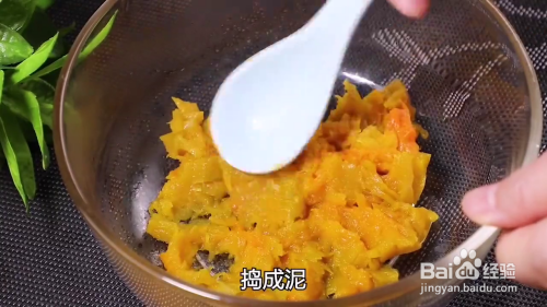 我们将南瓜去皮上锅蒸熟,然后捣成比较细腻的南瓜泥