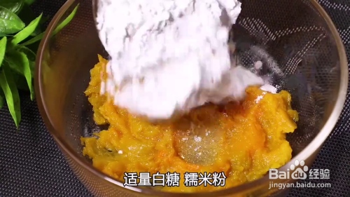 再加入适量的糯米粉和白糖,揉成光滑不沾手的南瓜糯米面团