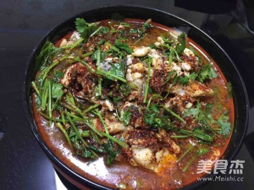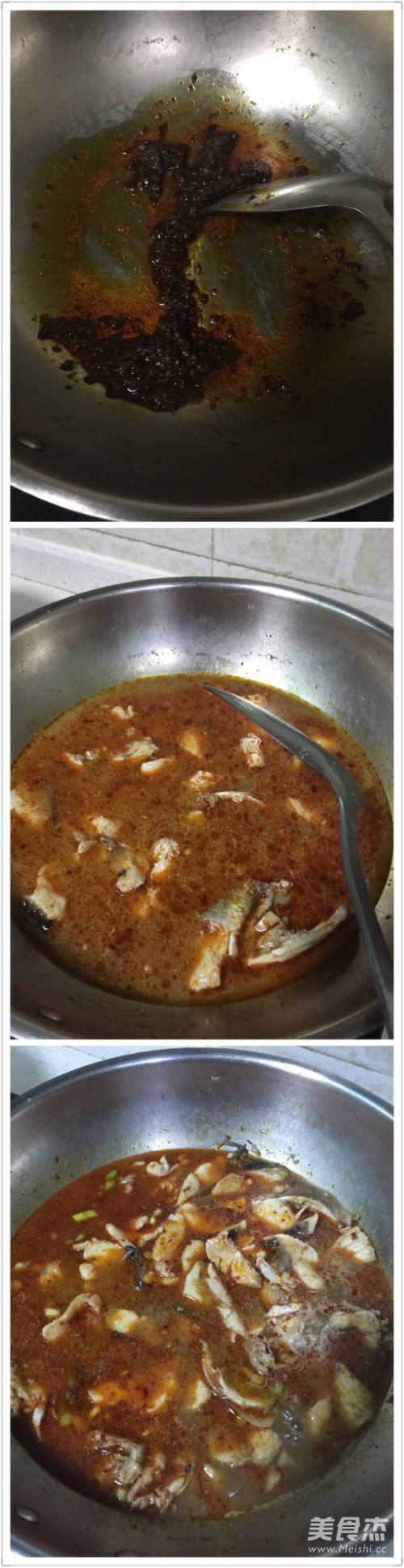 4酱料里面一共有两包,一包湿酱,一包干辣椒粉。锅里烧热油,加入适量湿酱,翻炒30秒,然后加入煮好的鱼骨汤,烧开后加入生鱼片,大火烧开,就可以装盘了。