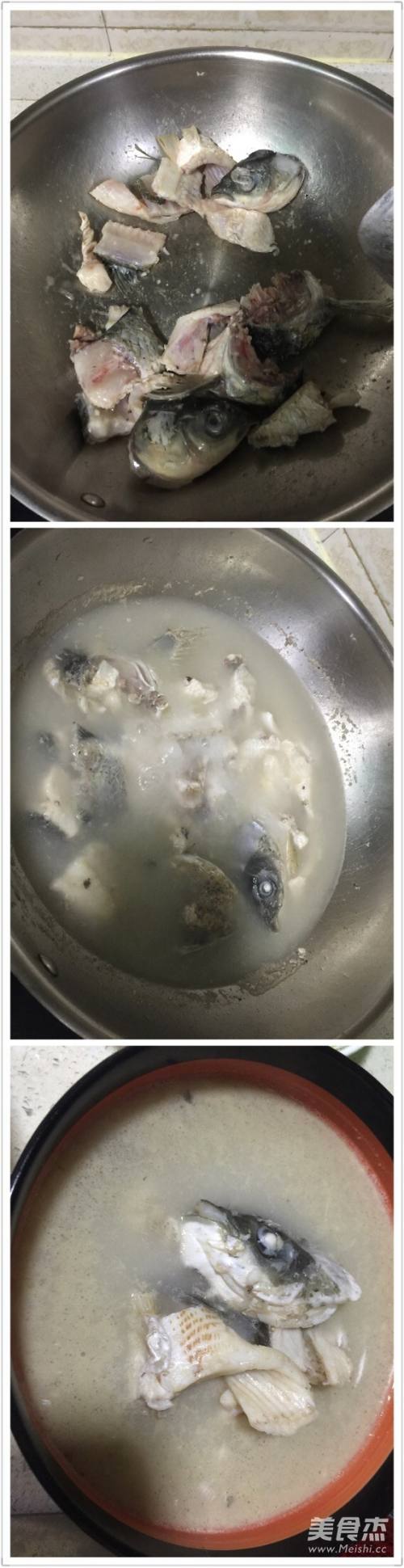 2锅里加少量油炒一下鱼骨,变白后加水,中火烧15分钟,盛起来。这时候的鱼骨汤加点盐都可以直接喝了,很浓很香,不过咱们留下来做水煮鱼哈。
