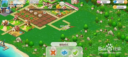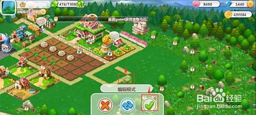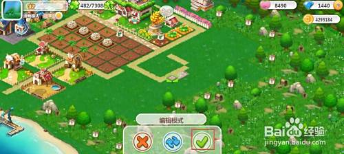 有一块花纹路出现在农场中,将它移到合适的位置放下,然后按对勾;