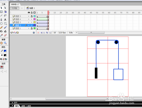 用FLASH软件模拟电梯的运动,一种带配重的电梯,用到补间动画。