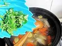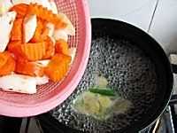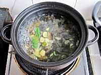 加入料酒炒出香味,然后倒入砂锅加入开水煮上5分钟。