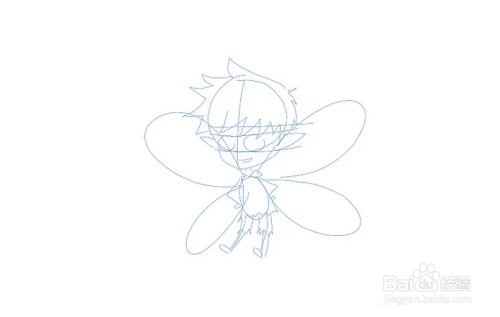 画出人物翅膀的草图。