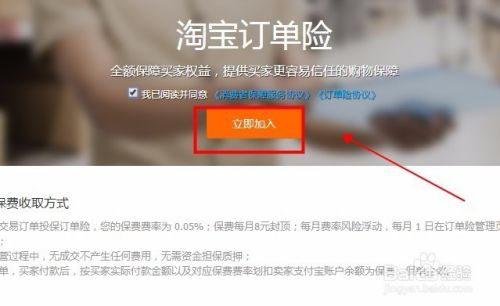 如下点击的是上一步中的“订单险”按钮,打开如下页面;这时先勾选规则下 方多选框并再点击窗口中的“立即加入”,进行下一步的操作即可。
