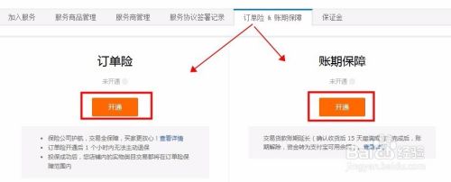 点击打开后这时会看到页面中有:订单险与帐期保障,两个按钮都未开通;可根据所需点击按钮进行开通操作。