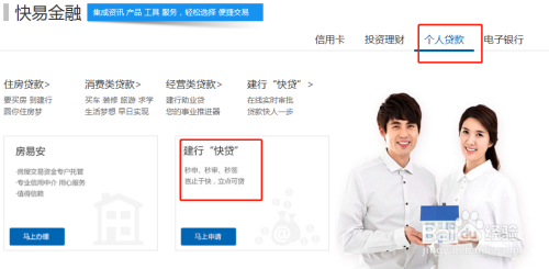网上银行:在个人贷款中点击建行“快贷”申请。