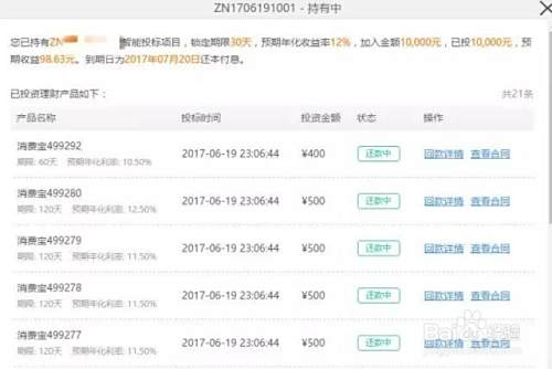 点击【债权明细】可查看详细债权项目。(下图以30天,投资1万元为例)