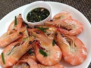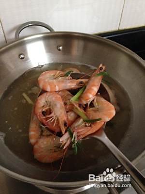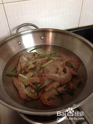 等水开后,煮2~3分钟,虾色变红断生后,把虾捞起。
