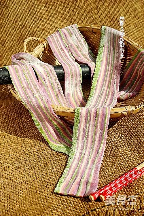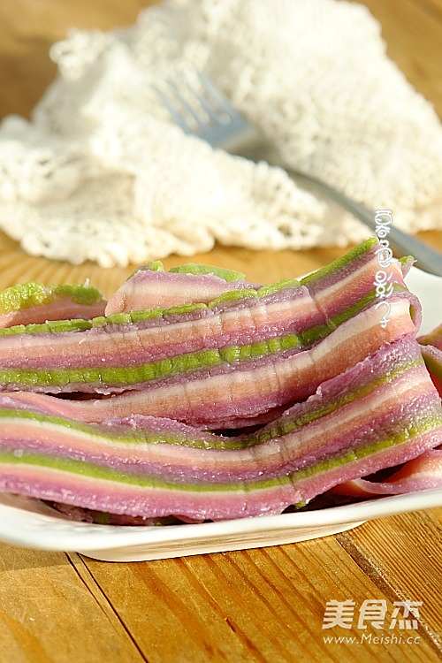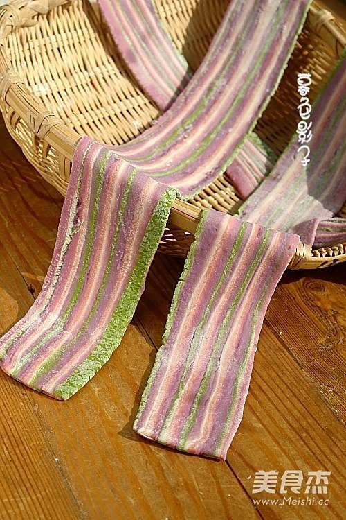 9擀好的面皮摞放在一起、颜色按照个人喜好搭配