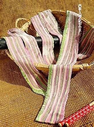 喜欢色彩漂亮的美食。如同生活里的温暖阳光一样,带来更多的快乐!前段时间去南方旅游,见到少数民族的妇女们,手织一种老粗布,布上边的花纹漂亮又大方。做装饰用一定很美,感觉如果水洗一定会稀里哗啦的脱色。所以就忍住了没下手!对那种色彩至今念念不忘。于是就有了,这碗“织锦”面条。在冬日的早晨美美的吃一碗彩色的面条。感觉比买粗布要实在,吃货的心情一下就兴奋起来了!